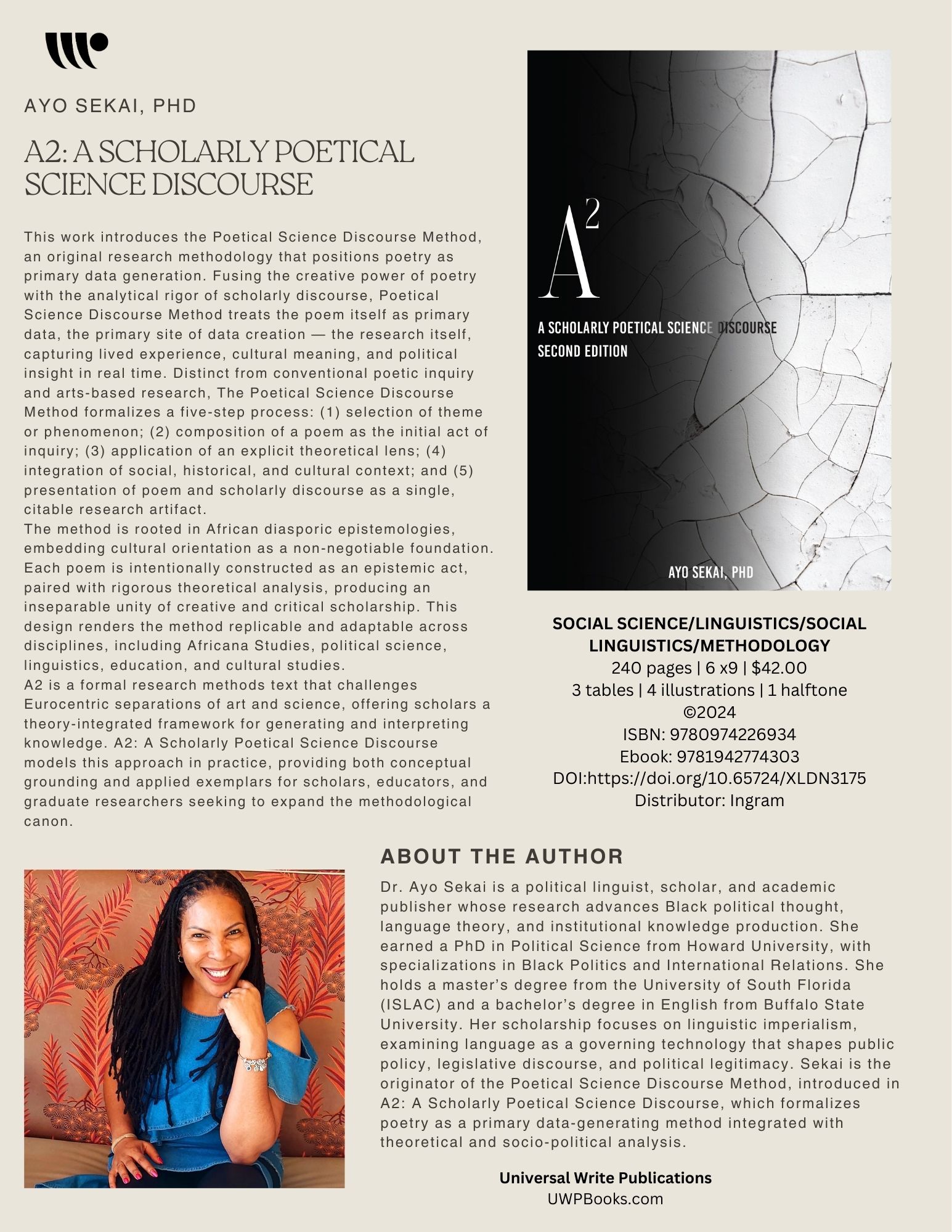 A2 is a formal research methods text that challenges Eurocentric separations of art and science, offering scholars a theory-integrated framework for generating and interpreting knowledge. A2: A Scholarly Poetical Science Discourse models this approach in practice, providing both conceptual grounding and applied exemplars for scholars, educators, and graduate researchers seeking to expand the methodological canon.